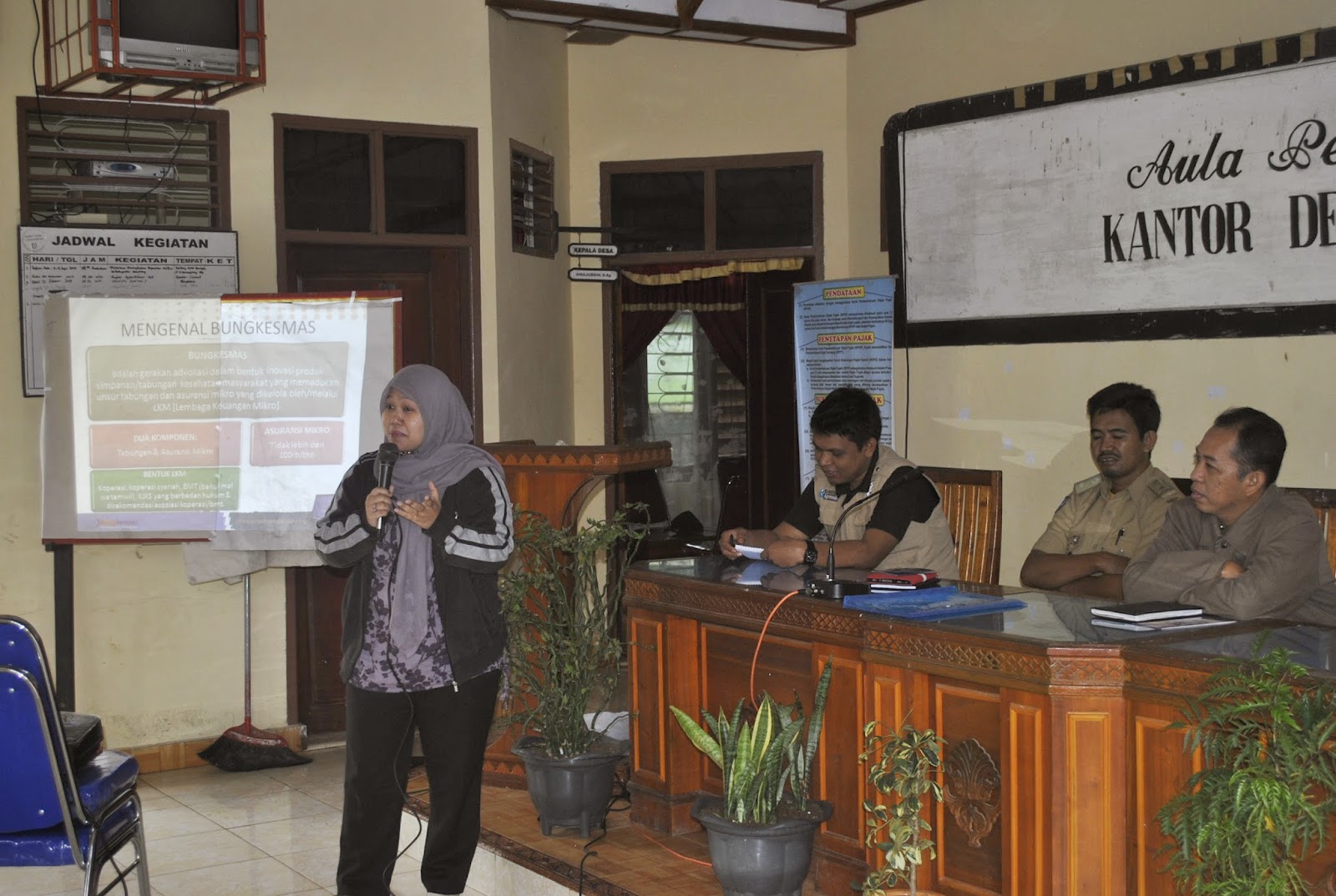 Dari hasil assessment dan diskusi yang dilakukan, diperoleh beberapa kesimpulan antara lain; Pertama, Bungkesmas bisa diimplementasikan bila ada lembaga keuangan/koperasi yang beroperasi. Kedua, ada koperasi yang settle dan koperasi lama seperti KUD tidak ada pengurusnya. Dari hasil diskusi yang diperoleh tersebut, diperoleh rekomendasi untuk membentuk koperasi baru/menghidupkan koperasi lama dengan menunjuk H. Arifuddin sebagai ketua.